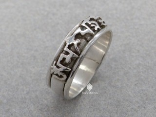Cette bague est très originale car on peut tourner la partie où se trouve le mantra.
