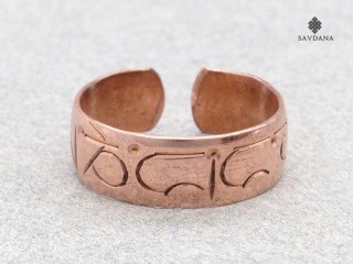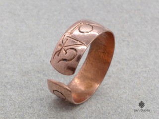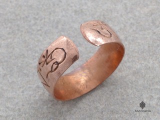 Jolie bague tibétaine en cuivre, avec le mantra Om Mani Padme Hum.