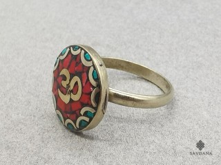 Jolie bague tibétaine réglable en laiton, avec le symbole Om.