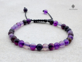 Beau bracelet mala de prières tibétain, fait avec des perles d'agate.