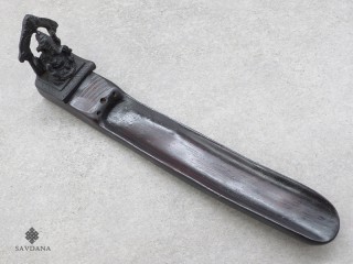 Il est en résine, et a été fait au Népal par des artisans népalais.