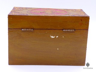 Un double dorje, Chhepu, et 2 nœuds sans fin sont représentés sur le coffret, .