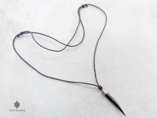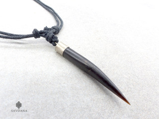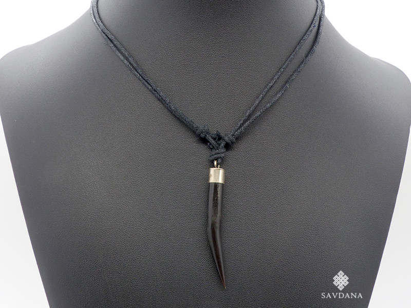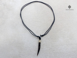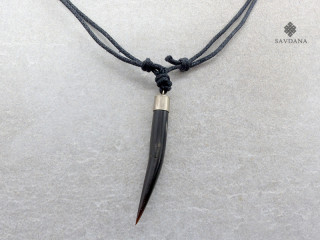 Beau collier composé d'un galon noir ainsi que d'un pendentif en corne de buffle.